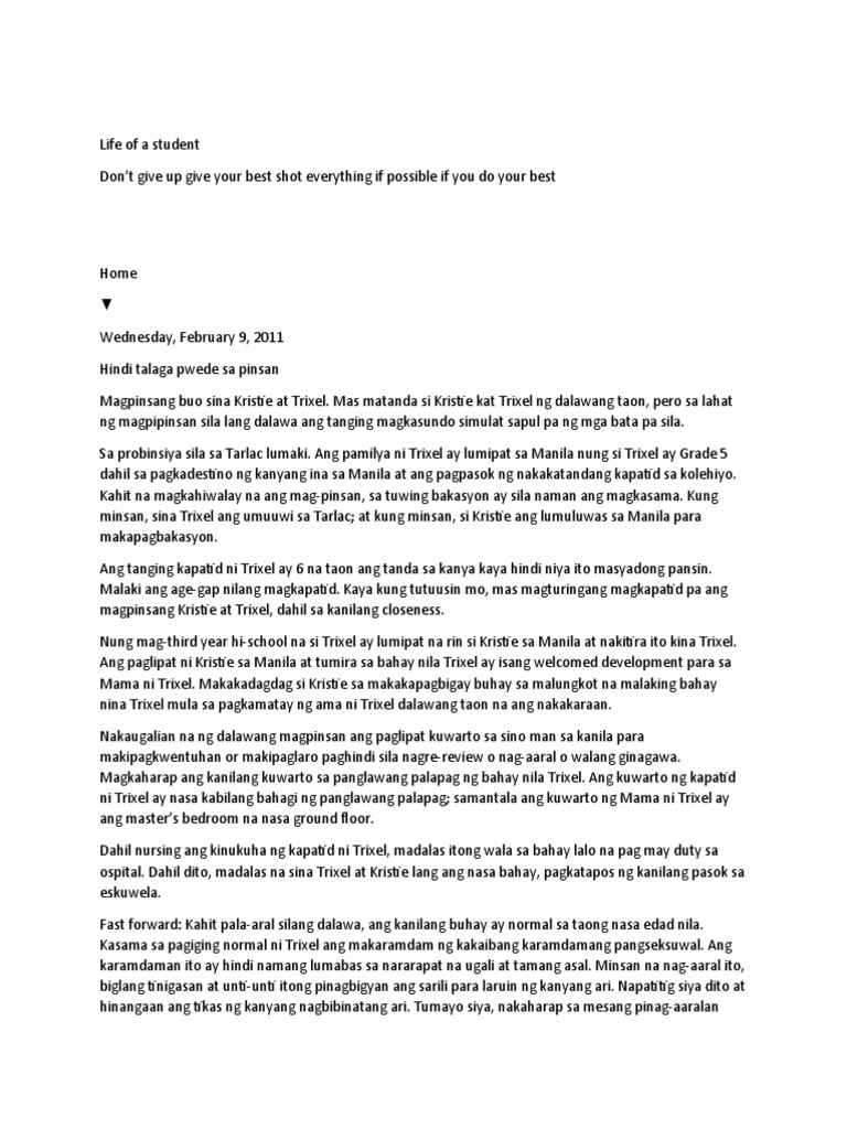 Hirap kang huminga at matulog. Huwag dapat batiin ang bata baka mausog. Ang karamihan kasi ng Pilipino ay ipinapanganak na pango o maliit ang ilong.