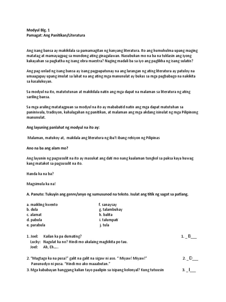 Panitikan Answers For Pharmacy