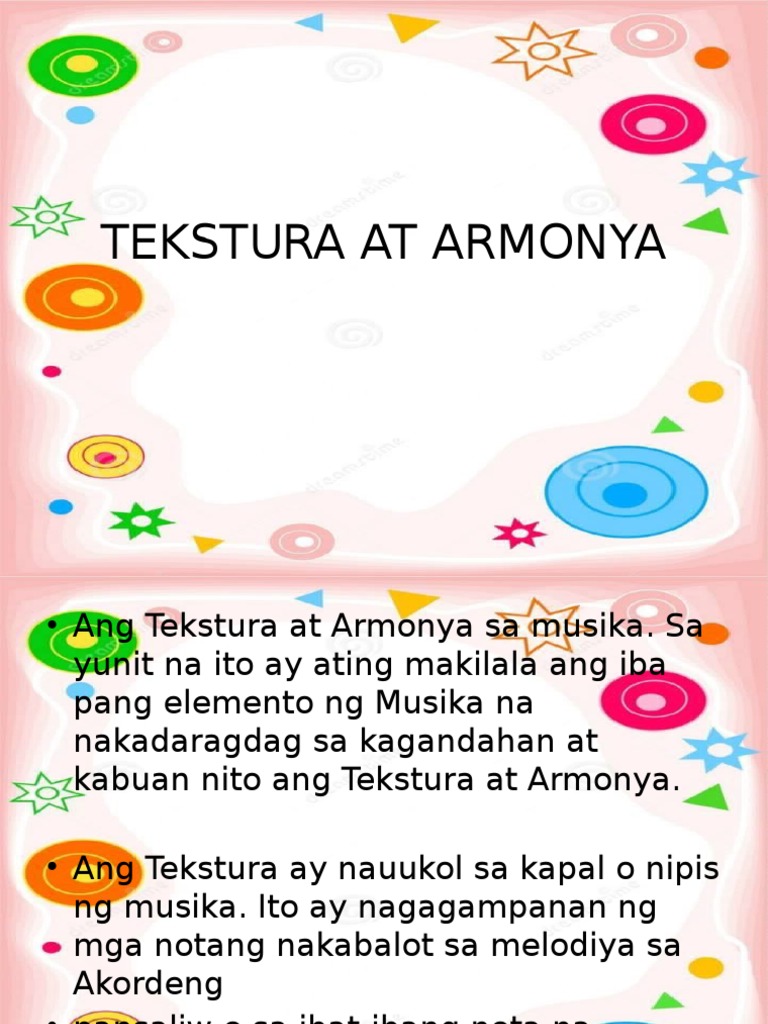 Interactive Flash swf Ang musikal na tekstura ay isa sa mga elemento ng musika na maririnig sa lahat ng komposisyong musikal. This video is unavailable. Sa kauna-unahang kong blog makikita nyo ang ibat- ibang paboritong ihanda na pagkain ng mga Filipino tuwing may pista kaarawan kasalan pasko at bagong taon.