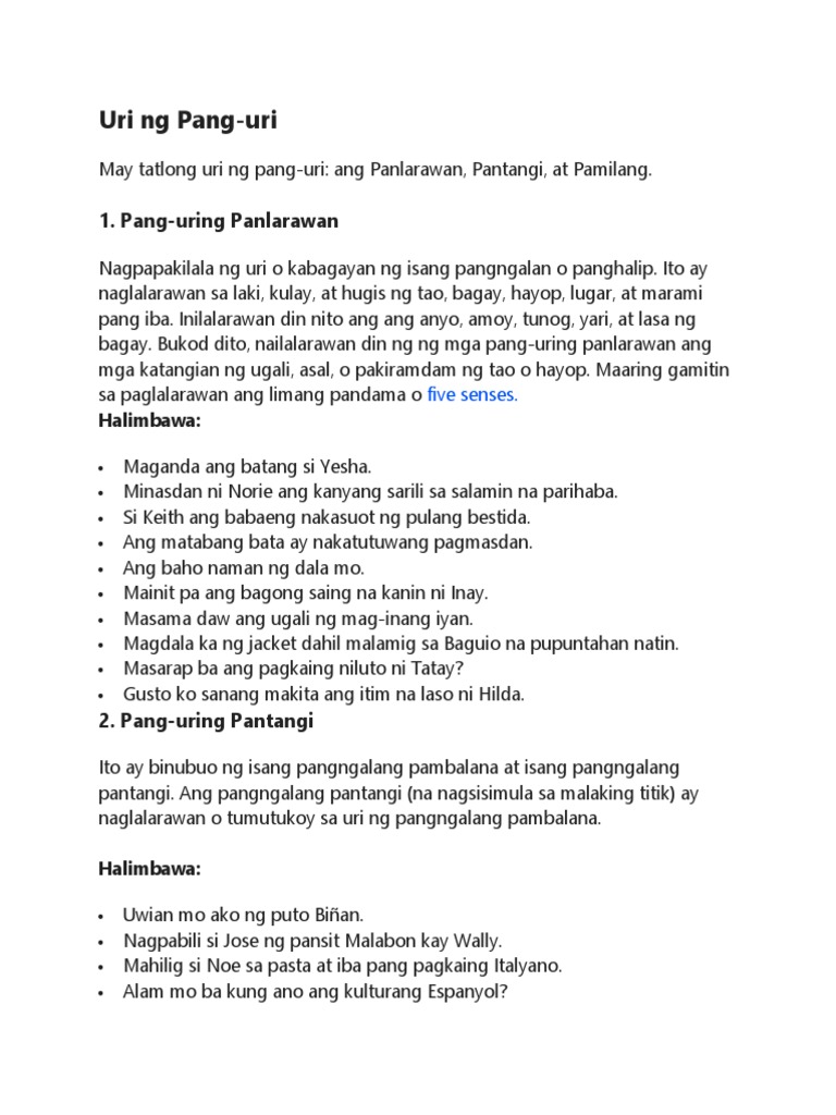 Uriin ang mga pangngalan. Sa isang tekstong deskriptibo ay mababasa natin ang paglalarawan ng isang manunulat o may akda sa isang tauhan hayop bagay lugar o pangyayari. Play this game to review Other.